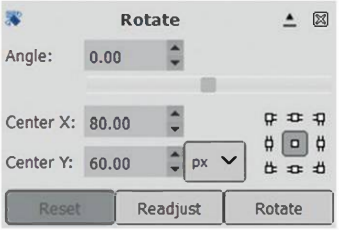 + Hộp thoại Rotate xuất hiện như hình dưới cho phép nhập vào góc xoay và tâm xoay của ảnh. Chọn Rotate để hoàn thành việc xoay ảnh.