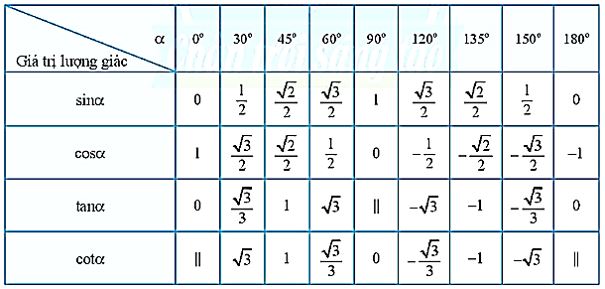 Chú ý: Trong bảng, kí hiệu "||" để chỉ giá trị lượng giác không xác định.