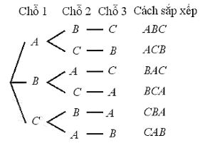 b) Vẽ sơ đồ hình cây về các cách sắp xếp và kiểm tra kết quả tính toán ở trên.