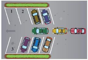 Bãi đỗ xe ô tô còn lại ba chỗ trông như Hình bên dưới.