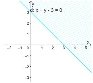 Do đó, miền nghiệm của bất phương trình là nửa mặt phẳng kể cả bờ \(d\), chứa gốc tọa độ O