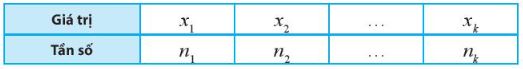 +) Mẫu số liệu cho dưới dạng bảng tần số thì: