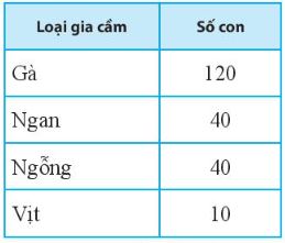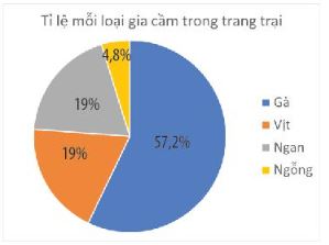 Câu 2: Bình vẽ biểu đồ biểu thị tỉ lệ số lượng mỗi loại gia cầm trong một trang trại theo bảng thông kê dưới đây: