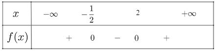 \(\left( { - \frac{1}{2},2} \right)\) và dương trong hai khoảng