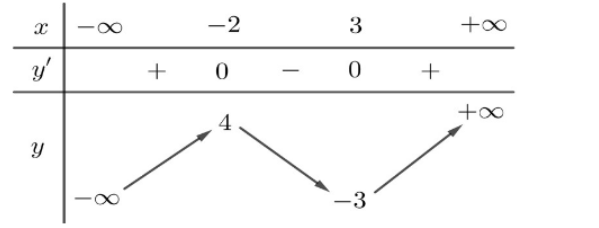 \(\mathbb{R}\) và có bảng biến thiên như hình bên dưới