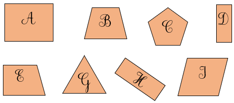 Bài 1: Trong các hình sau, hình nào là hình tứ giác, hình nào là hình chữ nhật?