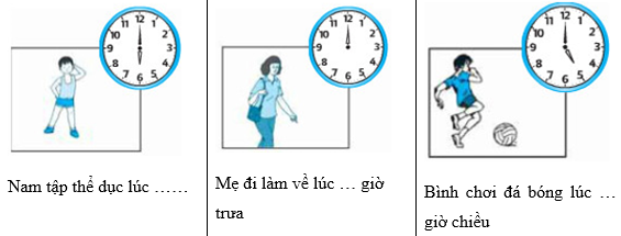 Bài 2: Điền giờ thích hợp vào mỗi bức tranh sau: