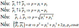 b. Trường hợp các vector động lượng thành phần (hay các vector vận tốc thành phần) không cùng phương, thì ta cần sử dụng hệ thức vector: và biểu diễn trên hình vẽ. Dựa vào các tính chất hình học để tìm yêu cầu của bài toán.