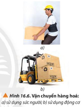 Ví dụ: Máy nâng chuyên dụng có công suất không đổi P =2 kW được sử dụng để vận chuyển các thùng hàng nặng lên độ cao 4 m so với mặt đất. Giả sử vật được nâng với tốc độ không đổi. Hãy so sánh tốc độ nâng vật và thời gian nâng trong hai trường hợp: vật nặng 500 kg và vật nặng 1 000 kg. Lấy gia tốc trọng trường g = 9,8 m/s2.