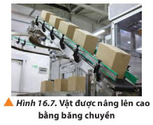 Ví dụ 1: Một thùng hàng có khối lượng 30 kg được đẩy lên một con dốc cao 2 m bằng một động cơ băng chuyền (Hình 16.7). Hiệu suất của động cơ là bao nhiêu? Biết rằng trong cả quá trình vận chuyển, động cơ cần sử dụng năng lượng tổng là 5000. Lấy g=9,8m/s.