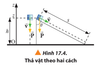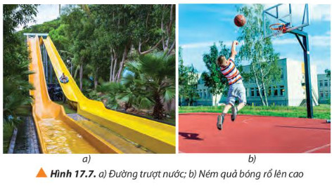 + Chọn gốc thế năng trọng trường tại chân đường trượt nước (Hình 17.7a) và tại mặt đất (Hình 17.7b).
