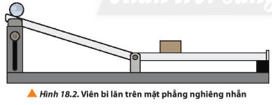Xét thí nghiệm như Hình 18.2: Lần lượt thả từng viên bi nhỏ có cùng hình dạng và kích thước nhưng có khối lượng khác nhau (một viên bằng sắt và một viên bằng thủy tinh) từ cùng một độ cao trên mặt phẳng nghiêng nhẵn, không vận tốc ban đầu. Sau đó, thả một trong hai viên bi từ hai độ cao khác nhau, không vận tốc ban đầu. Trong từng trường hợp, ta đặt một khúc gỗ nhỏ tại chân mặt phẳng nghiêng.