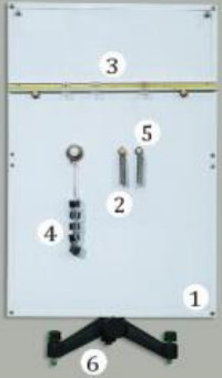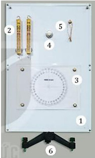- Thanh treo nhẹ, cứng, dài 400 mm. Trên thanh có gắn thước và ba con trượt có gắn móc treo (3).