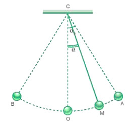 \({\alpha _o}\) = 30° rồi thả nhẹ nhàng, vật sẽ đi xuống O (vị trí thấp nhất) rồi đi đến B, sau đó quay lại và dao động cứ thế tiếp diễn. Bỏ qua tác dụng của các lực cản, lực ma sát, lấy g = 9,8 m/s2. Hãy tính độ lớn vận tốc của vật tại vị trí M khi dây treo hợp với OC góc a = 20°.