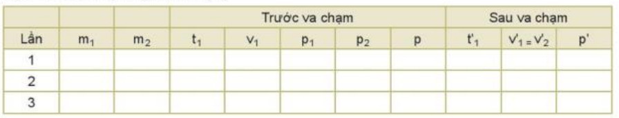 Bảng 30.2. Thí nghiệm va chạm đàn hồi