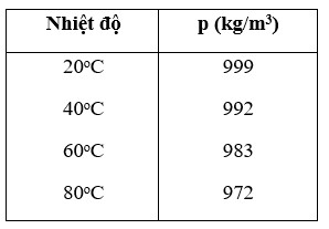 Bảng 34.2. Khối lượng riêng của nước ở các nhiệt độ khác nhau