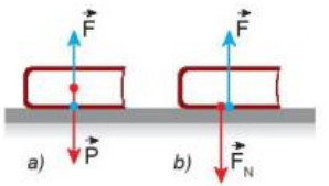 + Một cuốn sách nằm yên trên mặt bàn nằm ngang chịu tác dụng của hai lực cân bằng là lực hút của Trái Đất và lực đẩy của mặt bàn (Hình 34.1a).