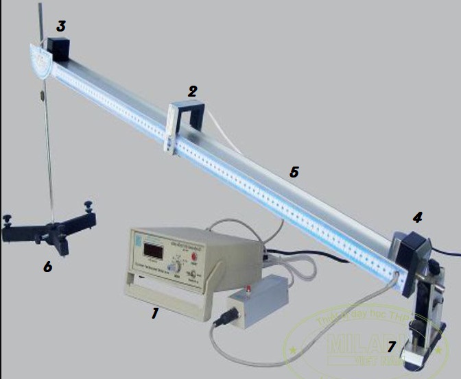 - Máng có giá đỡ bằng hợp kim nhôm, có gắn thước đo góc và dây dọi (4).