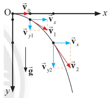 Ta có vectơ vận tốc tức thời tại một điểm được phân tích theo hai phương, phương thẳng đứng và phương ngang nên: