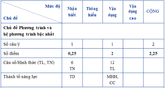 Ma trận đề kiểm tra cuối học kì 1 Toán 9 Cánh diều