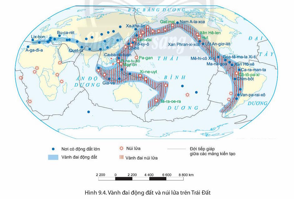 - Các mảng kiến tạo chuyển động xô húc vào nhau như mảng Ấn Độ - Ô- xtrây-li-a và mảng Âu-Á,...