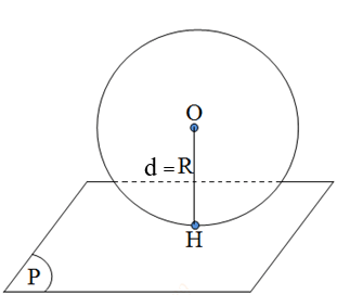 \(d = R \Leftrightarrow mp\left( P \right)\) có một điểm chung duy nhất. Ta nói mặt cầu