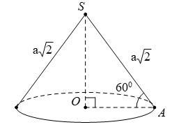\(SA = a\sqrt 2\) và góc giữa đường sinh và mặt phẳng đáy là