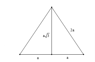 \({V_1} = \frac{1}{3}\pi {a^2}a\sqrt 3 = \frac{{\pi {a^3}\sqrt 3 }}{3}\)