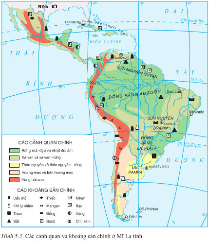 Mĩ La Tinh có những cảnh quan và tài nguyên khoáng sản gì?