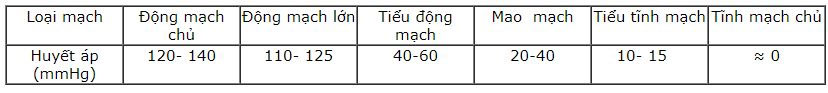 Bảng 19.2. Biến động huyết áp trong hệ mạch của người trưởng thành