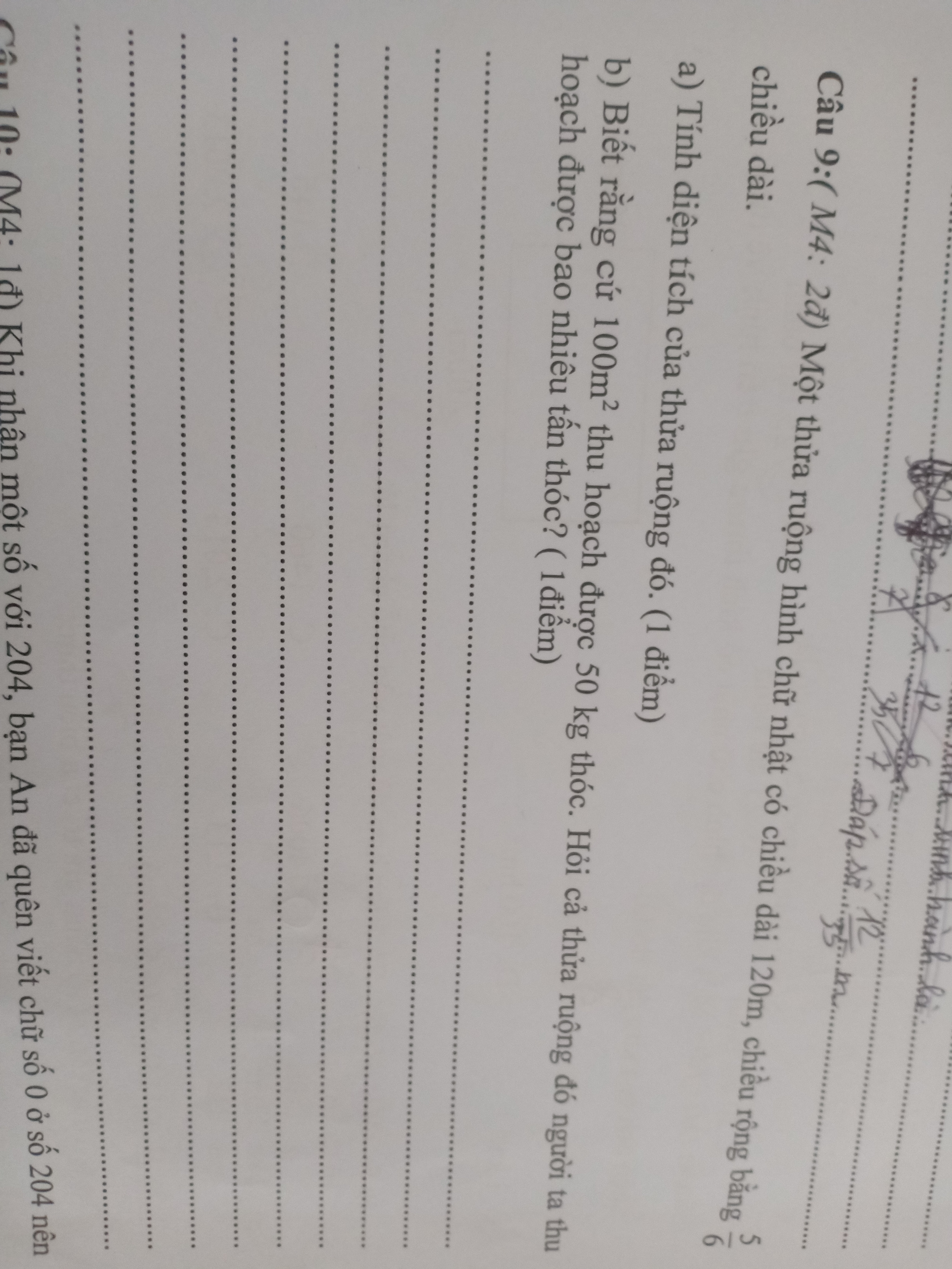 b. Biết rằng cứ 100m2 thu hoạch được 50kg thóc. Hỏi cả thửa ruộng đó người ta thu hoạch được bao nhiêu tấn thóc?