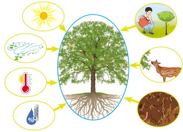 Hình 2: Một số nhân tố sinh thái tác động lên đời sống của cây xanh