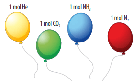 Ví dụ 1: Bơm vào 4 quả bóng bay 4 loại khí khác nhau và đều chứa cùng 1 mol chất khí ở nhiệt độ 25oC và áp suất 1 bar (0,987 atm).
