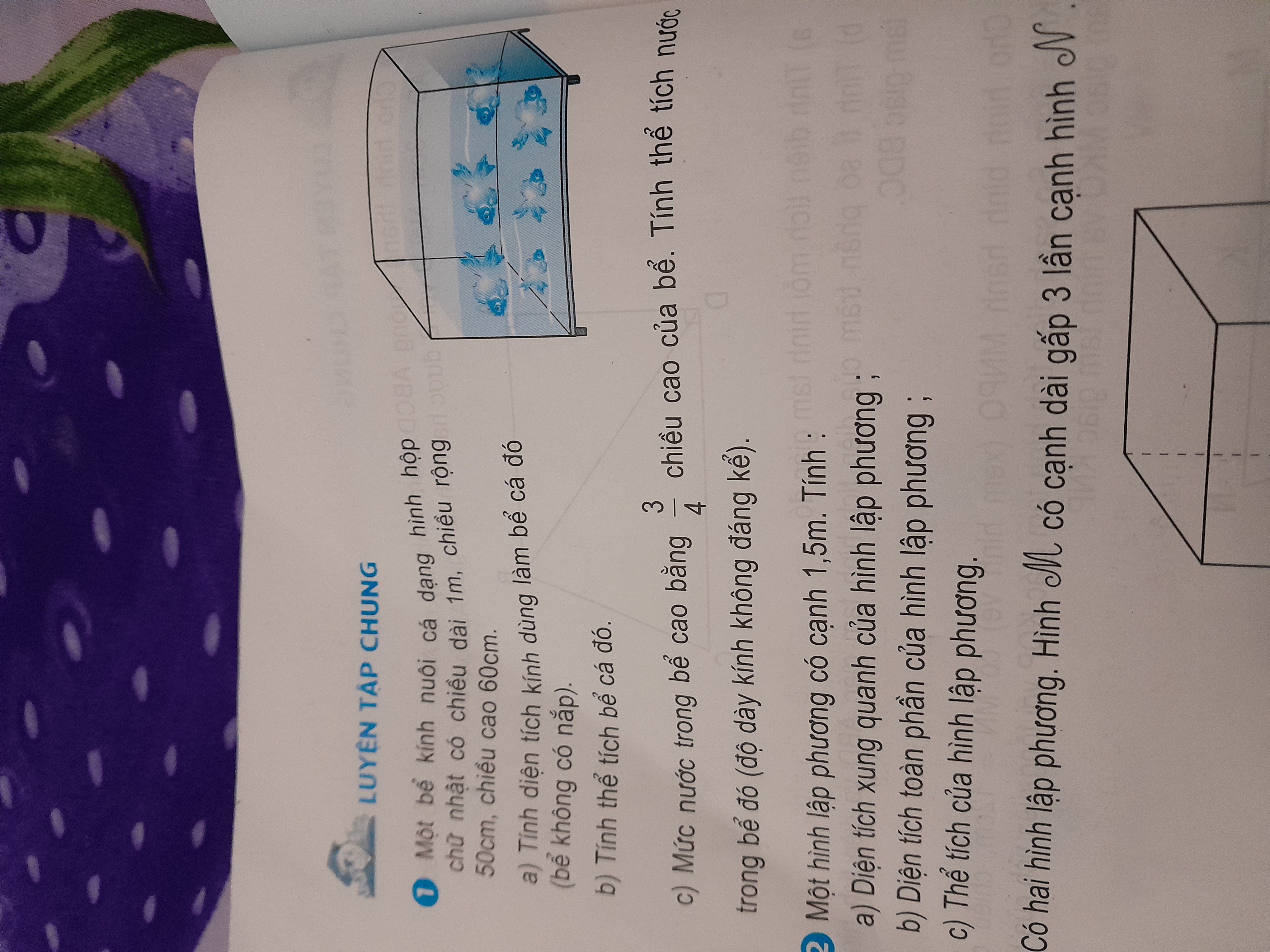 Một bể kính nuôi cá dạng hình hộp chữ nhật có chiều dài 1m