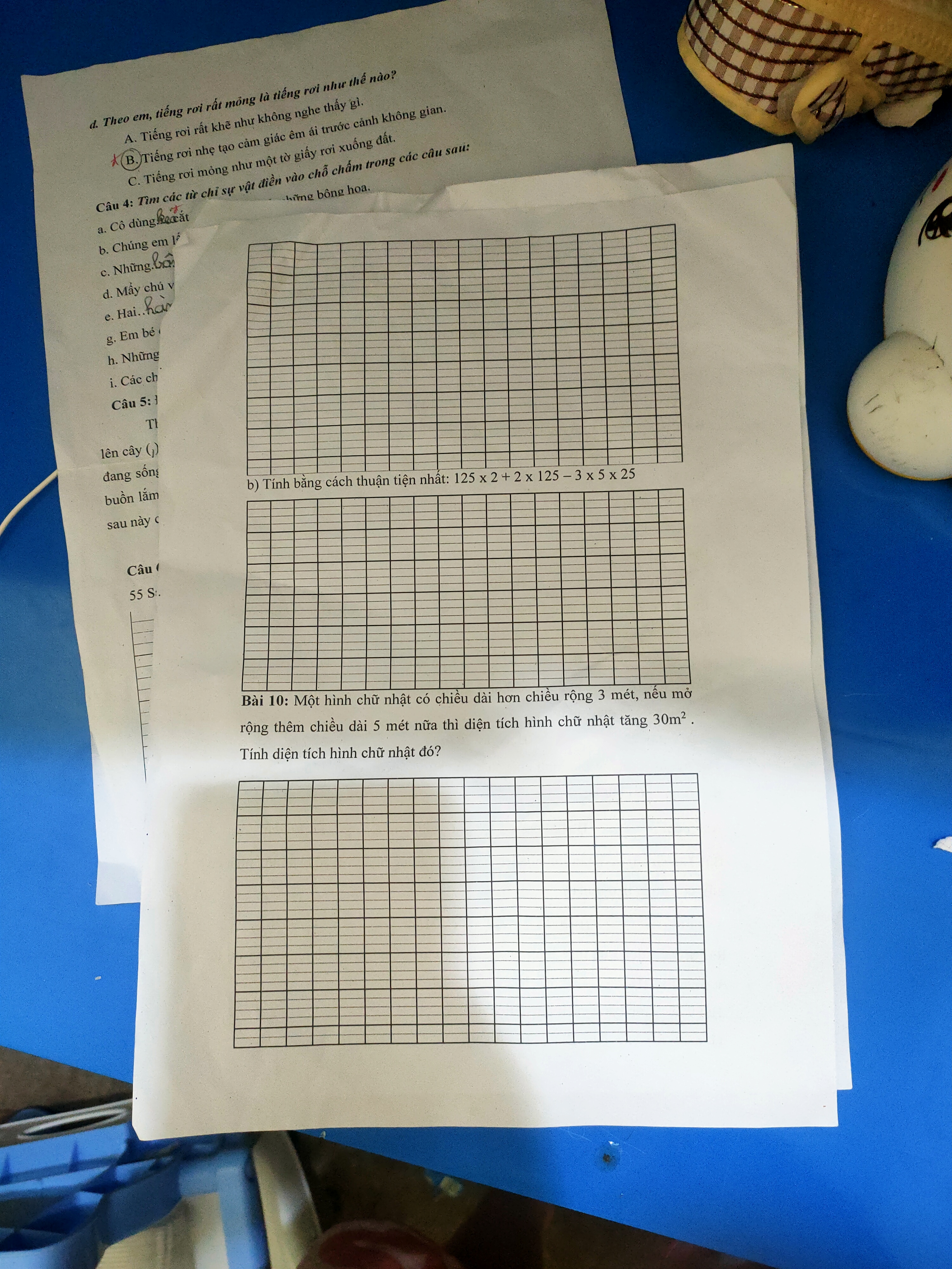 , nếu mở rộng thêm chiều dài 5 mét nữa thì diện tích hình chữ nhật tăng 30 m2. Tính diện tích hình chữ nhật đó?
