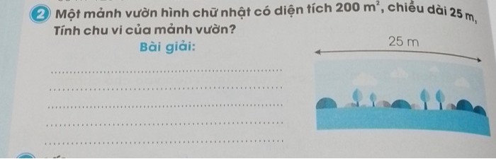 Một mảnh vườn hình chữ nhật có diện tích 200 mét vuông chiều dài 25 m