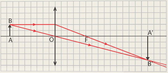 a) Sử dụng giấy kẻ ô và vẽ ảnh của vật AB qua thấu kính theo tỉ lệ 1 cạnh của ô vuông tương ứng với 1 cm như Hình 10.6.
