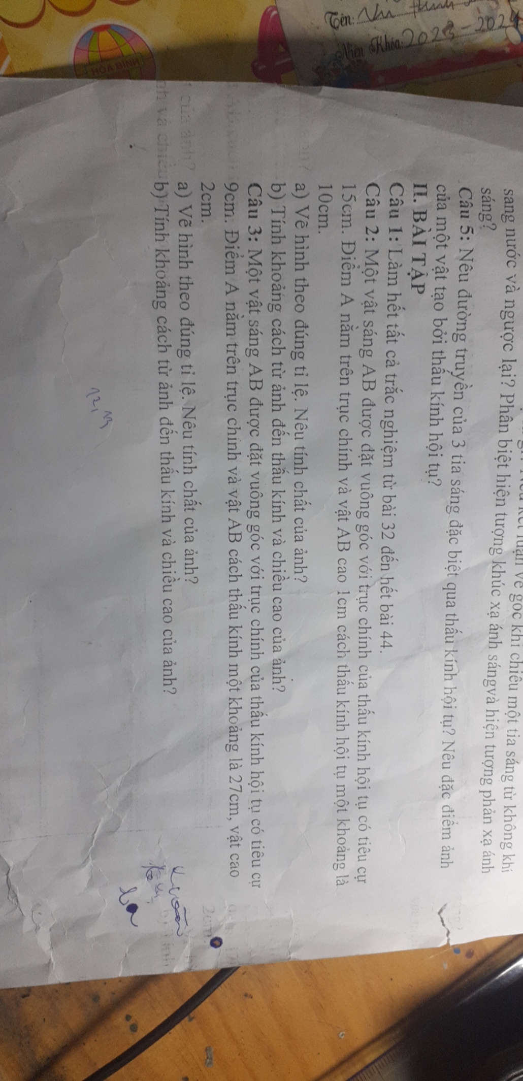 Một vật sáng AB được đặt vuông góc với trục chính của thấu kính hội tụ