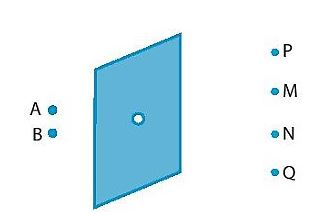 Một mục tiêu di động giữa A và B ở bên kia một bức tường, trên bức tường có một lỗ thủng nhỏ như hình dưới. Ở bên này bức tường, quan sát viên cần phải đặt mắt quan sát trong khoảng nào để nhìn thấy mục tiêu?