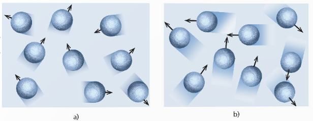 Chuyển động của phân tử có nhiệt độ thấp (a), trong vậy có nhiệt độ cao hơn (b)