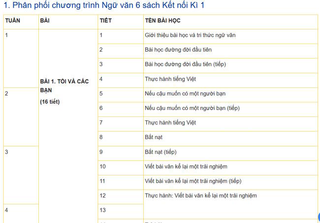 Phân phối chương trình Ngữ văn 6 sách Kết nối