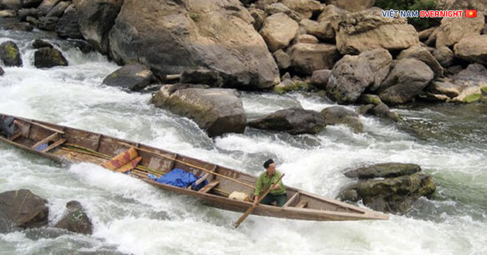 ⇒ Đó là sự kết hợp ngẫu nhiên hay có sự lựa chọn giữa tên địa danh vưới đặc điểm sông Đà ở quãng sông này? Chỉ biết rằng, khi ông Nguyễn tả luồng gió gùn ghè nơi mặt ghềnh lại nằm đúng vị trí Hát Loóng. Đọc tên địa danh mà phải nén hơi, uốn lưỡi như chính mình vừa phải đi qua nơi sóng gió dữ dội, ghê rợn ấy.