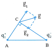 9.10^{- 8}C\). Tìm cường độ điện trường tổng hợp và vẽ vectơ cường độ điện trường tại điểm C nằm cách A một khoảng 4 cm, cách B một khoảng 3 cm.