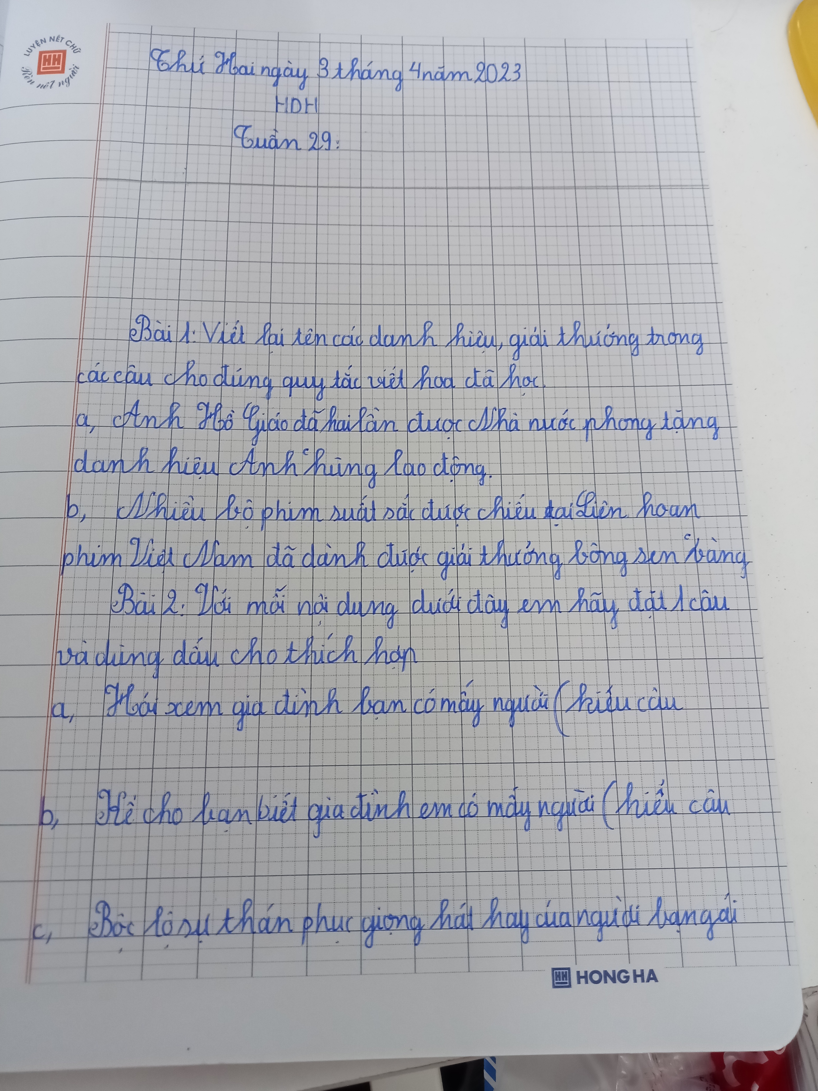 Viết 1 câu và dùng dấu hợp lý: Hỏi xem gia đình bạn có mấy người