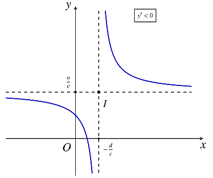 \(ad - bc < 0\): hàm số nghịch biến trên từng khoảng xác định.