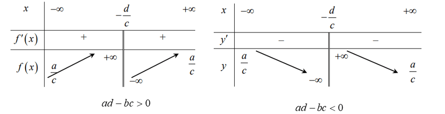 \(ad - bc > 0\): hàm số đồng biến trên từng khoảng xác định. - Nếu