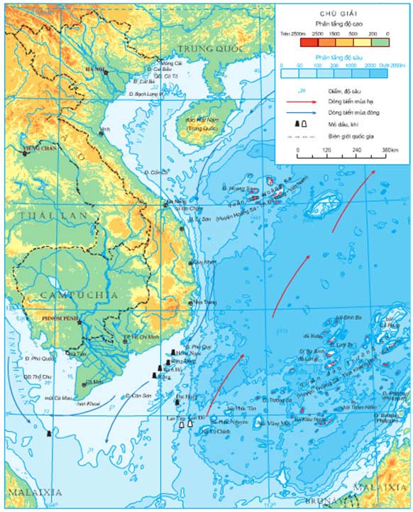 1. Quan sát trên bản đồ Địa lí tự nhiên Việt Nam (hoặc Atlat Địa lí Việt Nam), nhận xét sự thay đổi thiên nhiên từ Đông sang Tây?