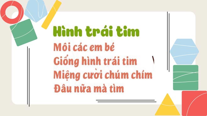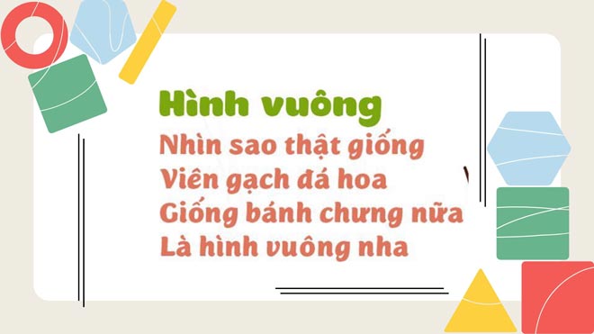 Những bài thơ về các hình khối cơ bản với từ ngữ đơn giản, nhịp điệu nhẹ nhàng, dễ thuộc, dễ nhớ giúp trẻ làm quen với các hình khối cơ bản như: hình tròn, hình vuông, hình tam giác, hình chữ nhật... Qua việc đọc, nghe và cảm nhận thơ, trẻ sẽ dần hình thành khái niệm về hình khối, đồng thời phát triển khả năng ngôn ngữ, trí tưởng tượng và óc sáng tạo.