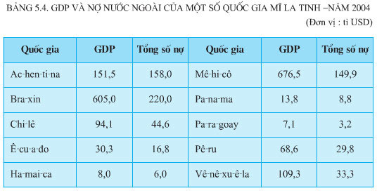 Dựa vào bảng 5.4, cho biết đến năm 2004, những quốc gia nào ở Mĩ La tinh có tỉ lệ nợ nước ngoài cao (so với GDP)