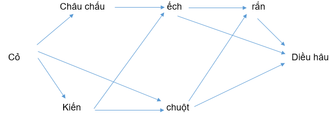 Bài tập 2. Tại một đồng cỏ có các sinh vật sau: cỏ, châu chấu, diều hâu, rắn, ếch, chuột, kiến.
